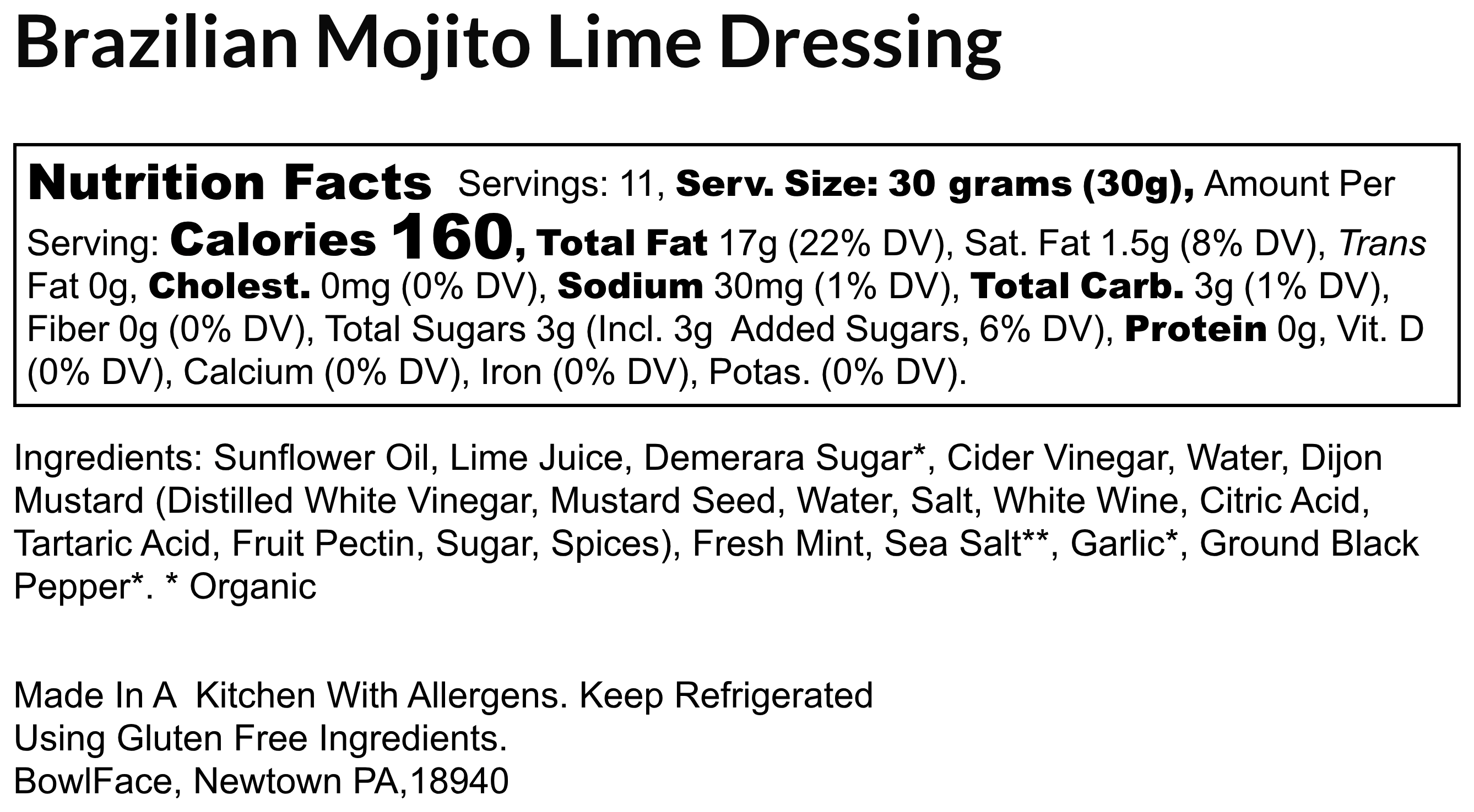 A fresh, refrigerated dressing inspired by the classic Brazilian mojito. Bursting with bright lime, cool mint, and a touch of sweetness, this vibrant dressing brings the taste of summer to your table year-round. Perfect as a zesty marinade for seafood and chicken, or drizzled over fresh salads for an instant flavor escape.